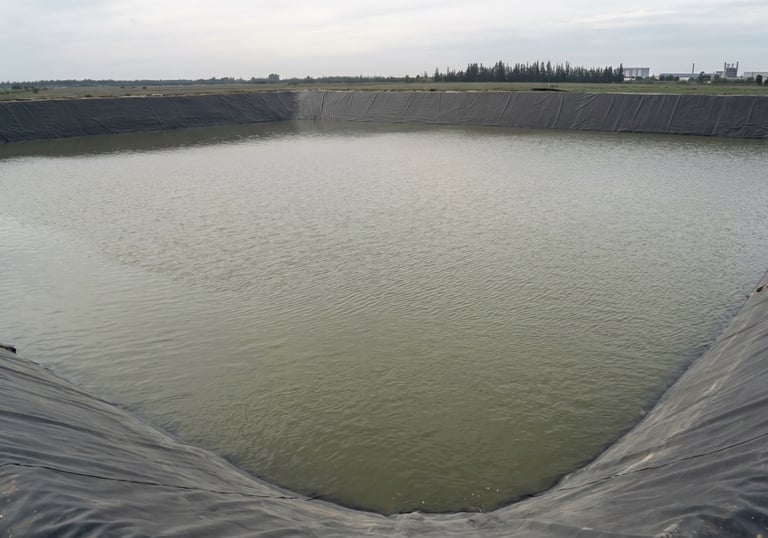 Secure water storage with high-resistance geomembrane to prevent evaporation.